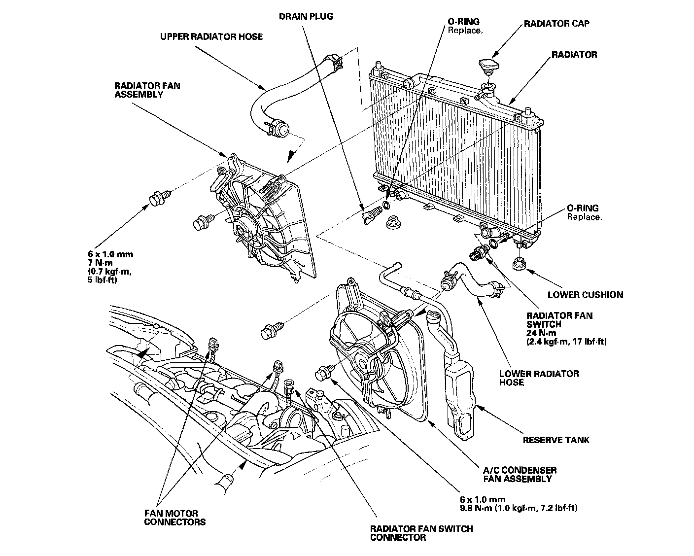 Radiator and Fans Replacement1. Drain the engine coolant.