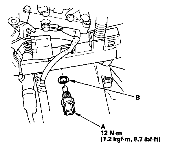 4. Install the sensor in the reverse order of removal with a new O-ring (B).