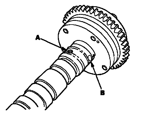 7. Seal the advance holes (A) and retard holes (B) in the No. 1 camshaft journal with tape.