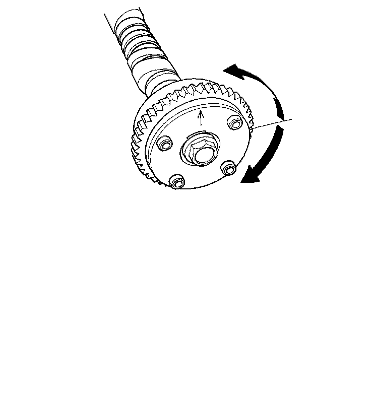 6. Check that the variable valve timing control (VTC) actuator is locked by turning the VTC actuator clockwise and counterclockwise. If the VTC actuator is not locked, replace the VTC actuator.