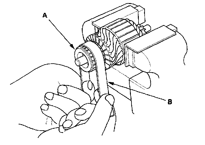 13. Check for continuity between each brush (A) and the armature housing (B). If there is continuity, replace the armature housing.
