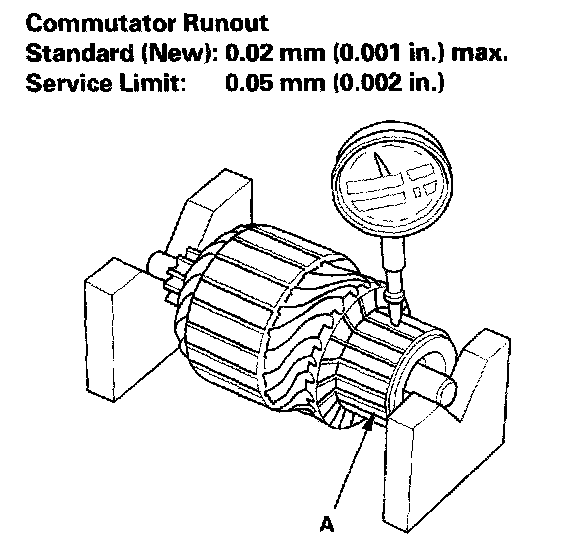 - If the commutator runout is not within the service limit, replace the armature.
