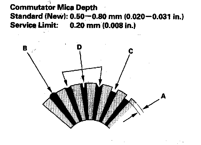 - If the commutator runout is within the service limit, check the commutator for carbon dust or brass chips between the segments.