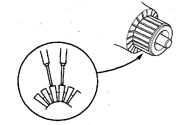 8. Check for continuity between the segments of the commutator. If there is an open circuit between any segments, replace the armature.