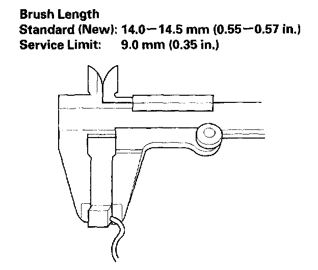 11. Measure the brush length. If it is not within the service limit, replace the brush holder assembly.