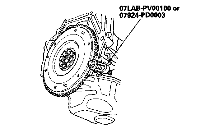 4. Install the special tool, then torque the flywheel mounting bolts in a crisscross pattern in several steps.