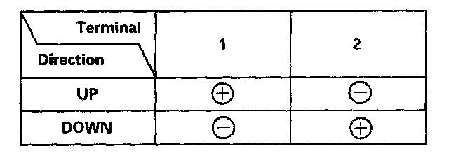 3. Test the motor in each direction by connecting battery power and ground according to the table. When the motor stops running, disconnect one lead immediately.