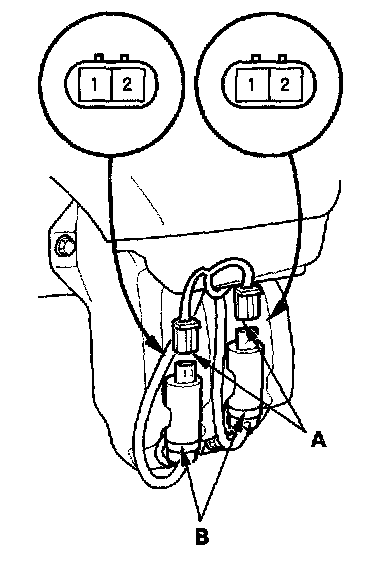 2. Disconnect the 2P connectors (A) from the washer motors (B).