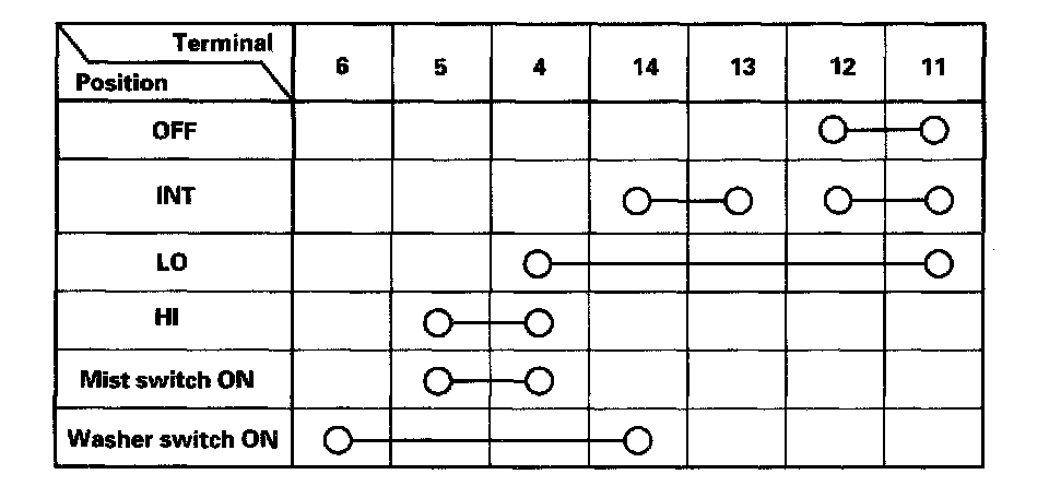 - If the terminals look OK, check for continuity between the terminals in each switch position according to the tables.
