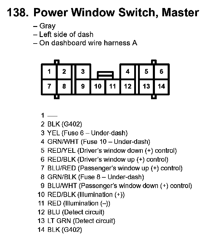 138. Power Window Switch, Master: