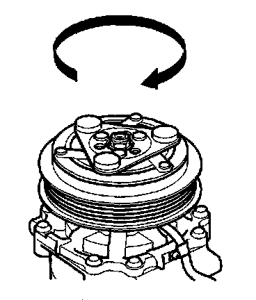 2. Check the rotor pulley bearing play and drag by rotating the rotor pulley by hand. Replace the clutch set with a new one if it is noisy or has excessive play/drag.