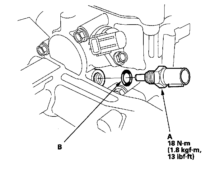 Disconnect the ECT sensor connector, then remove the ECT sensor (A).