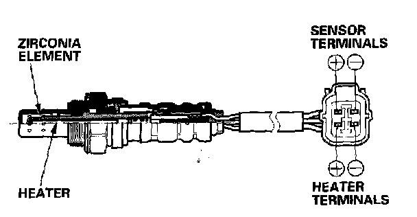 The secondary HO2S detects the oxygen content in the exhaust gas downstream of the Three Way Catalytic Converter (TWO and sends signals to the ECM which varies the duration of fuel injection accordingly. To stabilize its output, the sensor has an internal heater. The secondary HO2S is installed behind the TWC.