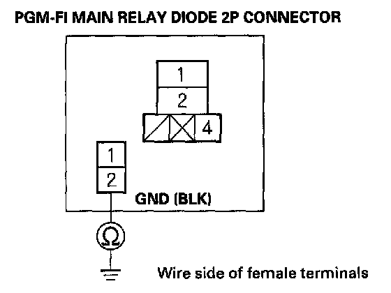 29. Check for continuity between body ground and PGM-FI main relay diode 2P connector terminal No.2.