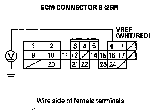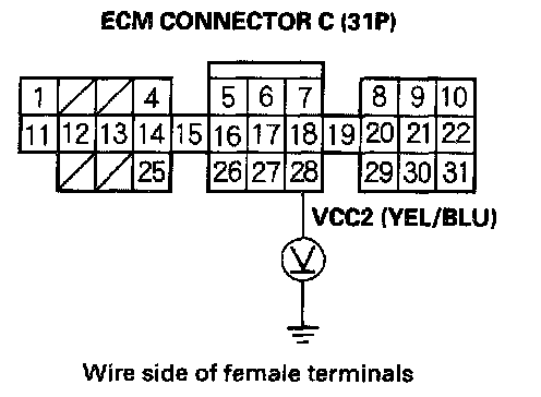 38. Measure voltage between body ground and ECM connector terminal C19.