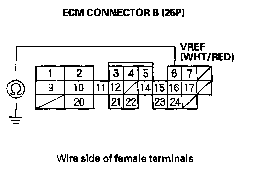 61. Measure voltage between ECM connector terminal B17 and body ground.