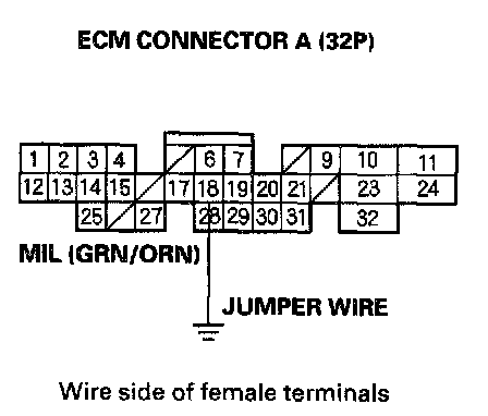12. Connect ECM connector terminal A18 to body ground with a jumper wire.