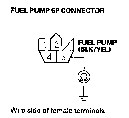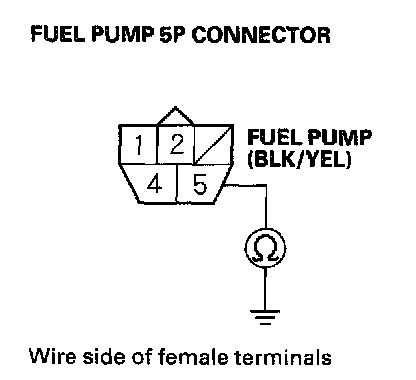 26. Check for continuity between fuel pump 5P connector terminal No. 5 and body ground.