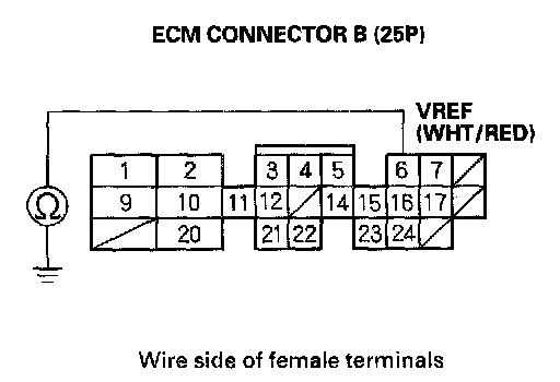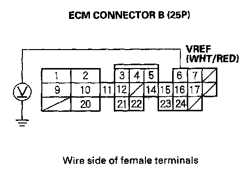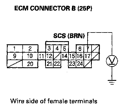 61. Measure voltage between ECM connector terminal B17 and body ground.