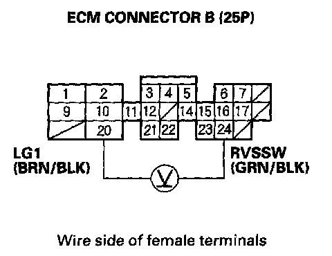 3. Measure voltage between the ECM connector terminal 824 and B20.