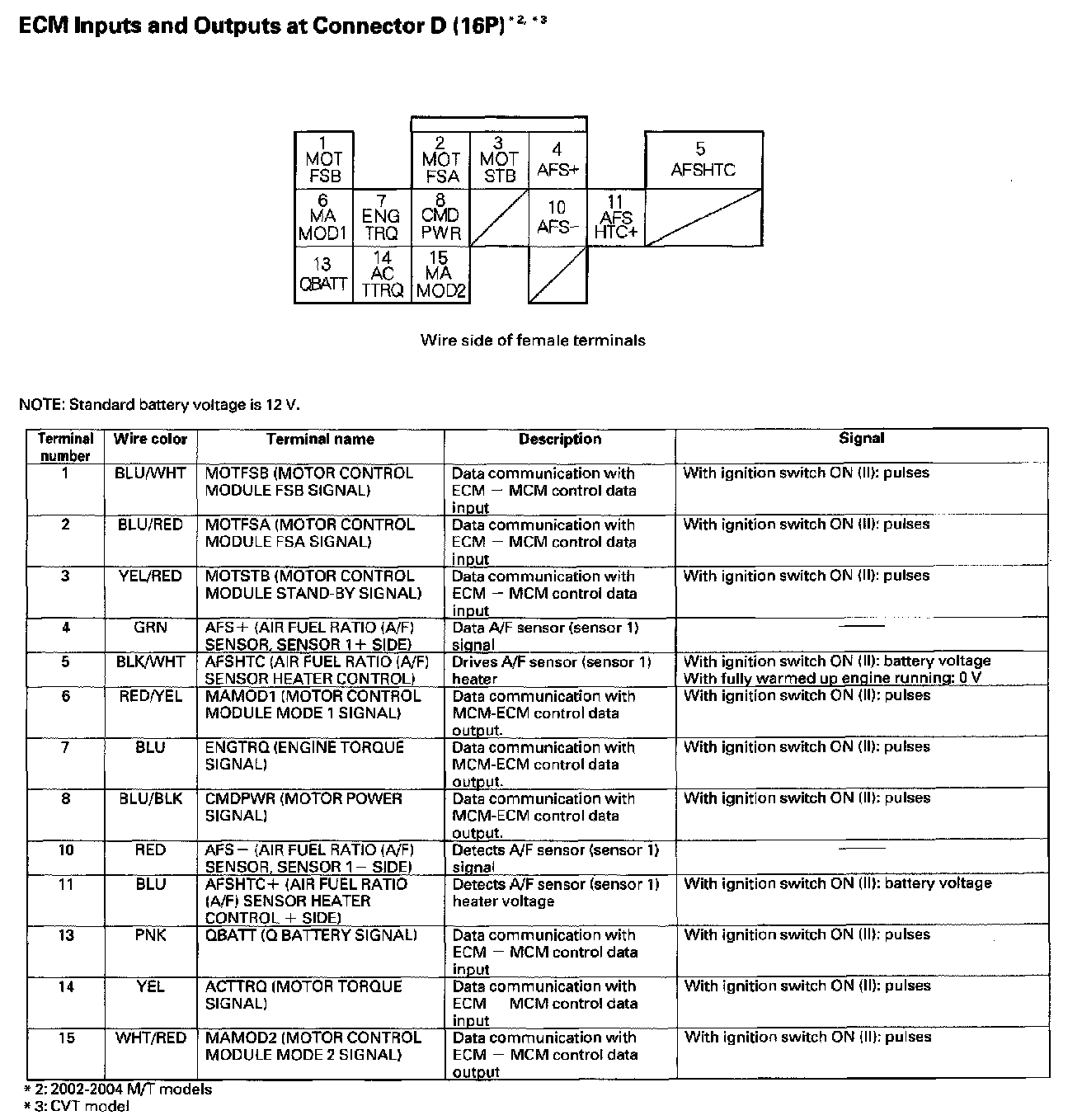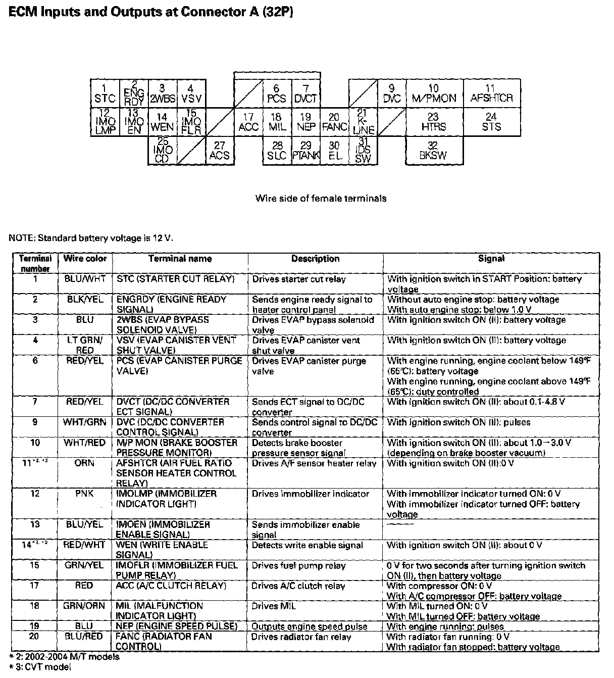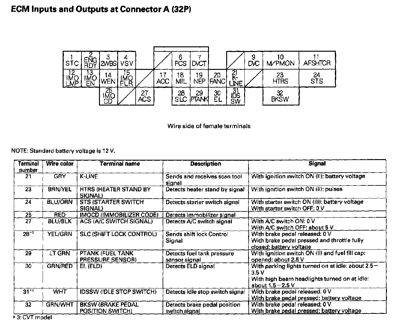 ECM Inputs And Outputs At Connector A (32P) Part 1: