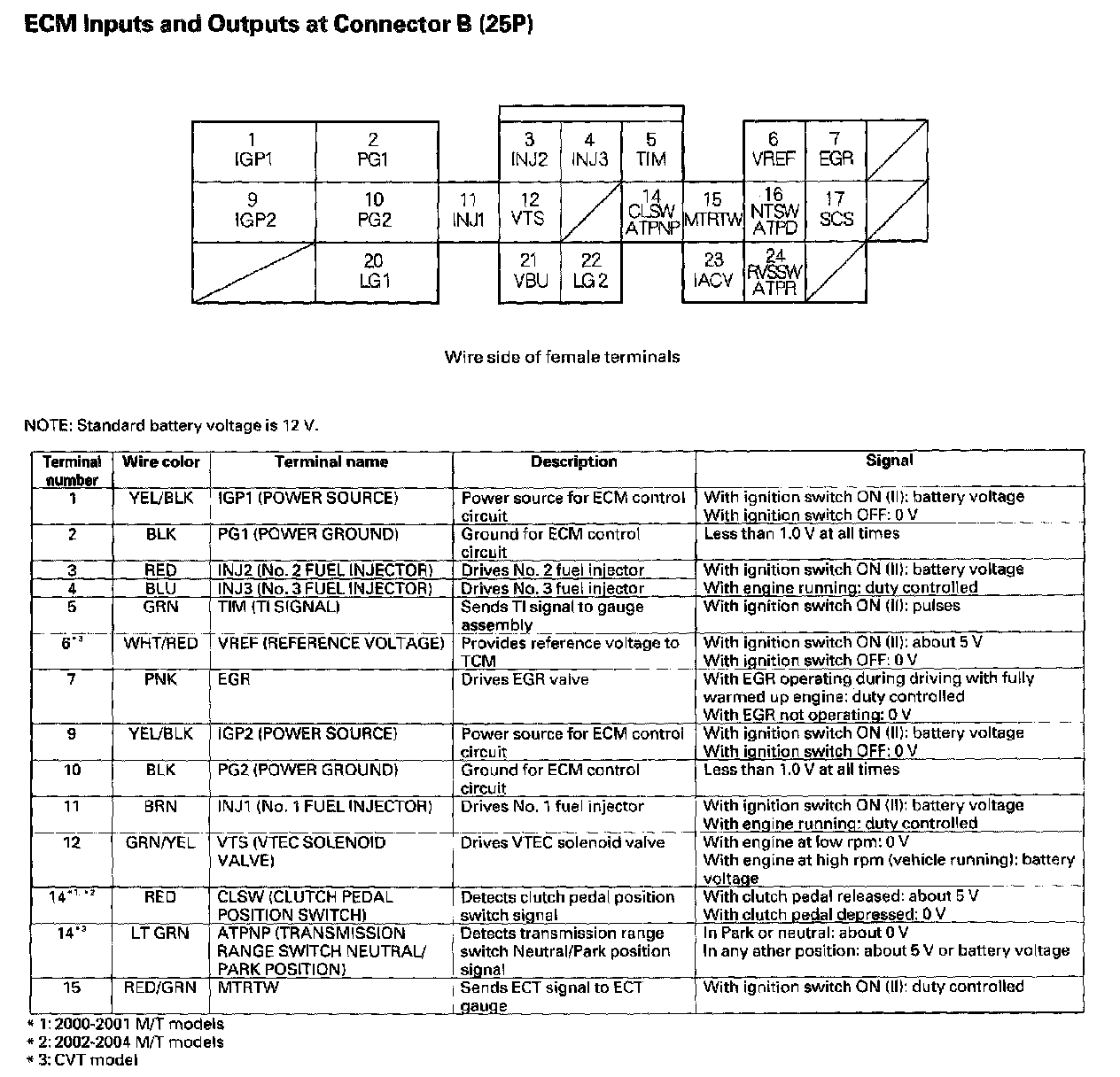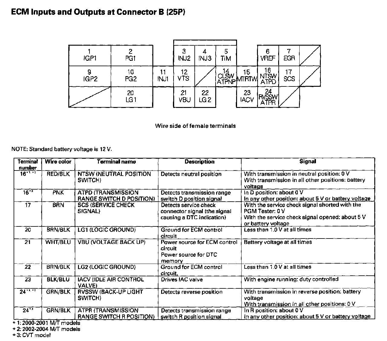 ECM Inputs And Outputs At Connector B (25P) Part 1: