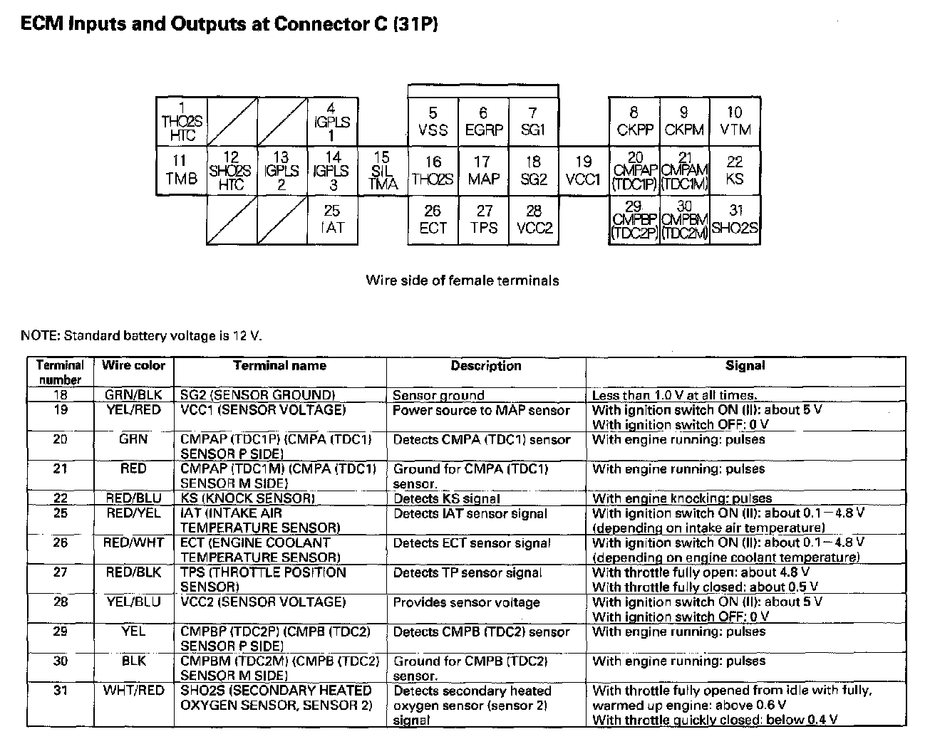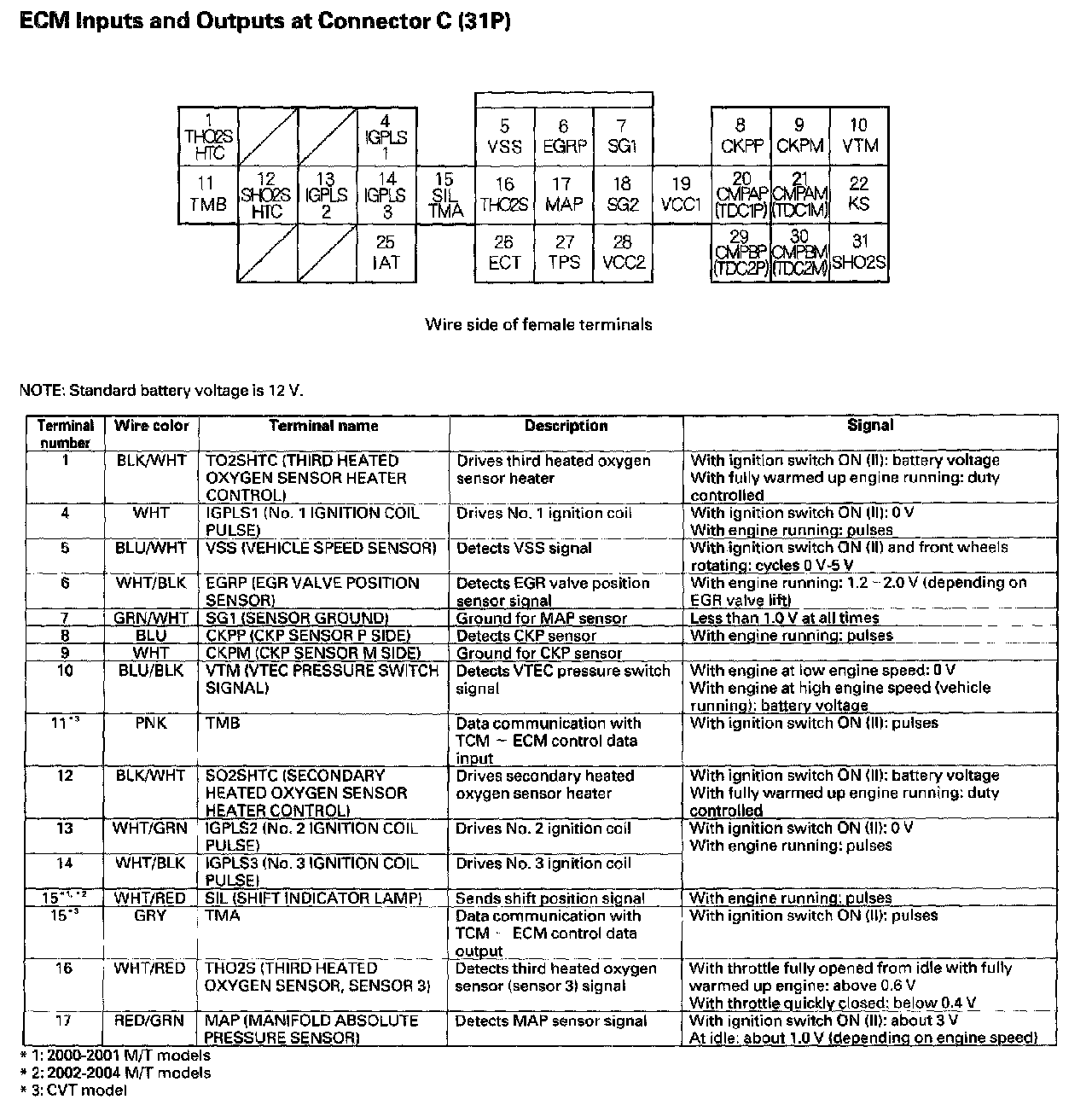ECM Inputs And Outputs At Connector C (31P) Part 1: