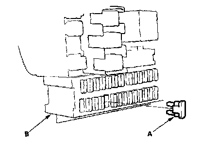2. Remove the No. 18 (7.5 A) fuse (A) from the under-dash fuse/relay box (B) for 60 seconds.