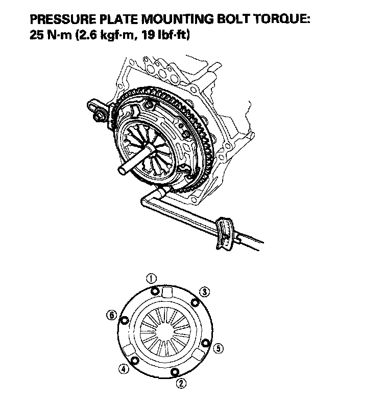 5. Torque the mounting bolts in a crisscross pattern. Tighten the bolts in several steps to prevent warping the diaphragm spring.