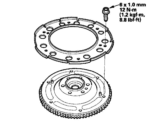 2. Remove the flywheel mounting bolts in a crisscross pattern in several steps, then remove the flywheel.