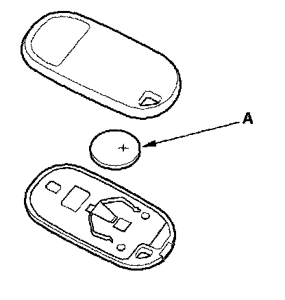 3. Replace the transmitter battery (A) with a new one, and try to lock and unlock the doors with the transmitter by pressing the lock or unlock button five or six times.