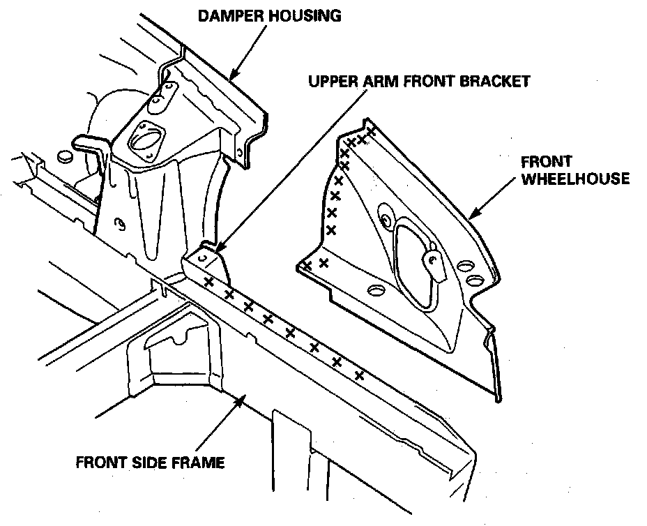 - Weld the damper housing, wheelhouse rear and front damper stiffener.