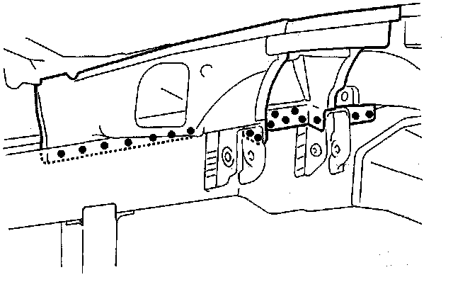 - From passenger compartment side, plug weld the holes in the dashboard lower and wheelhouse rear.