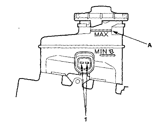 Brake Fluid Level Switch TestCheck for continuity between the terminals (1) with the float in the down position and the up position.