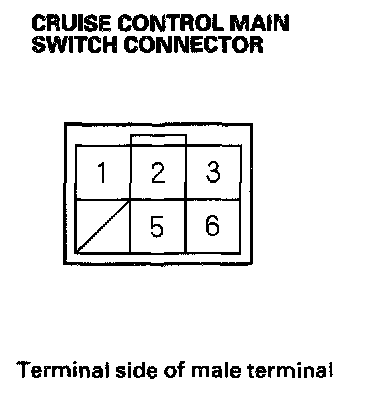 4. If a failure occurs between terminals No.6 and No.1, replace the cruise control main switch.