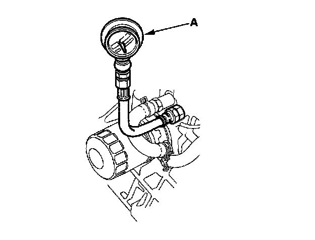 2. Remove the engine oil pressure switch, and install an oil pressure gauge (A).