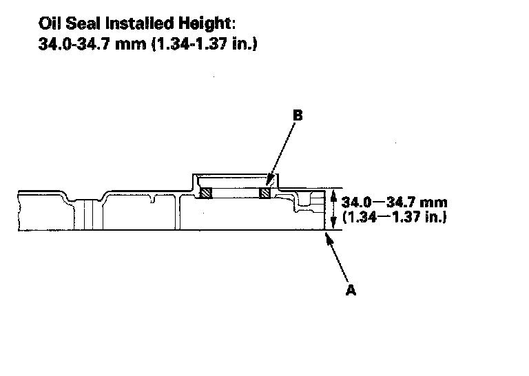 2. Measure the distance between the chain case surface (A) and the oil seal (B).