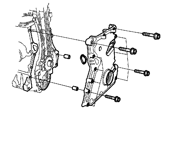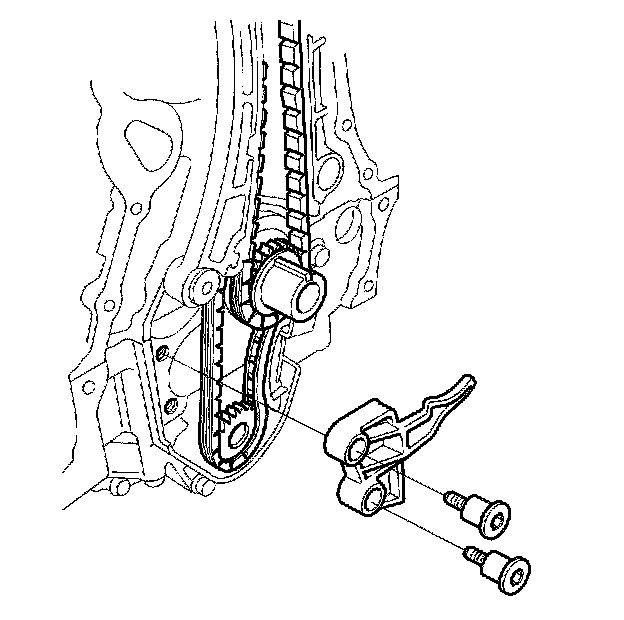 29. Remove the end cover and nozzle from the timing chain auto-tensioner.