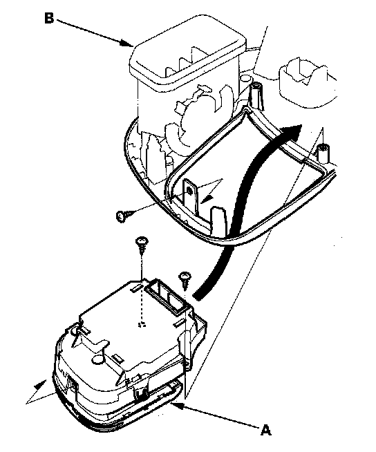 2. Remove the self-tapping screws and the heater control panel (A) from the instrument panel (B).
