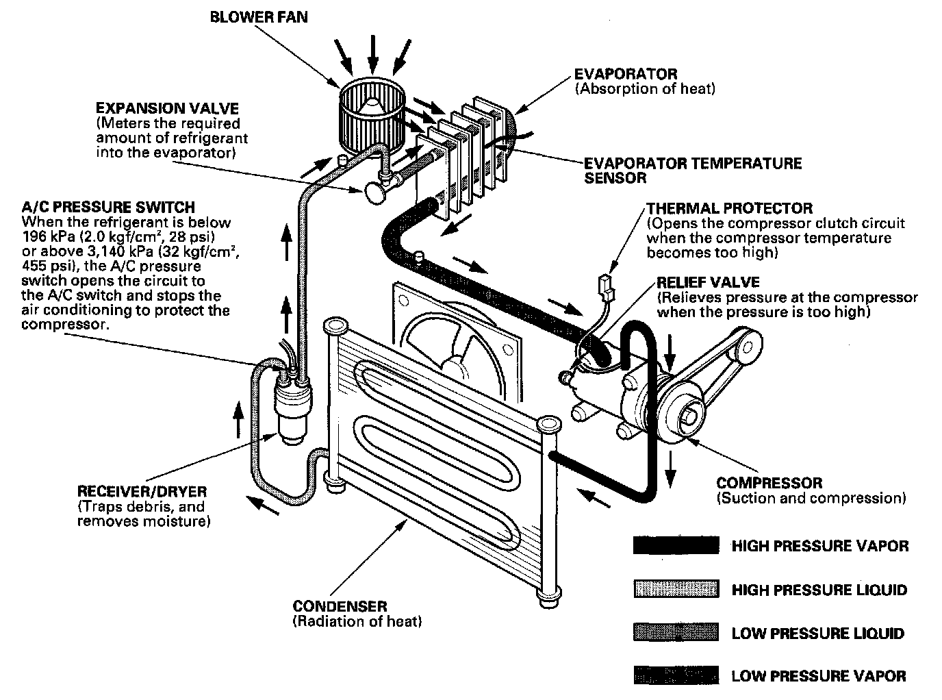 - All A/C system parts (compressor, discharge line, suction line, evaporator, condenser, receiver/dryer, expansion valve, O-rings for joints) have to be designed for refrigerant R-134a. Do not exchange with R-12 parts.