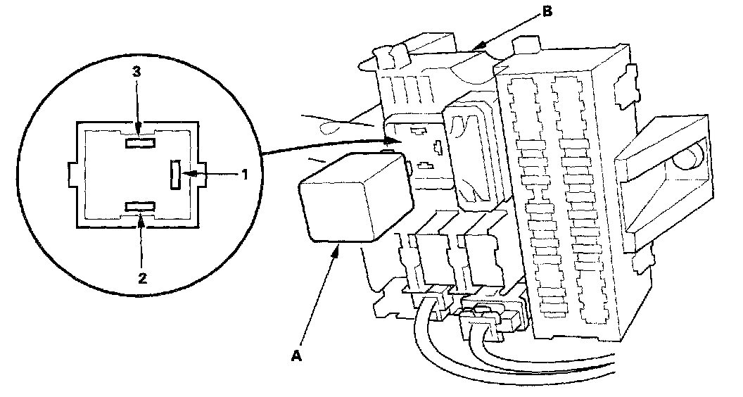 Turn Signal/Hazard Relay Input Test1. Remove the turn signal/hazard relay (A) from the under-dash fuse/relay box (B).