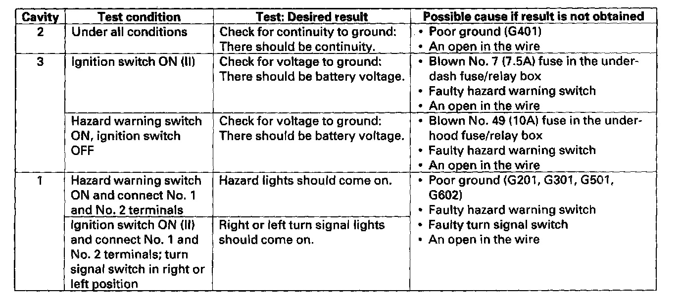 - If all the input tests prove OK, the turn signal/hazard relay must be faulty; replace it.