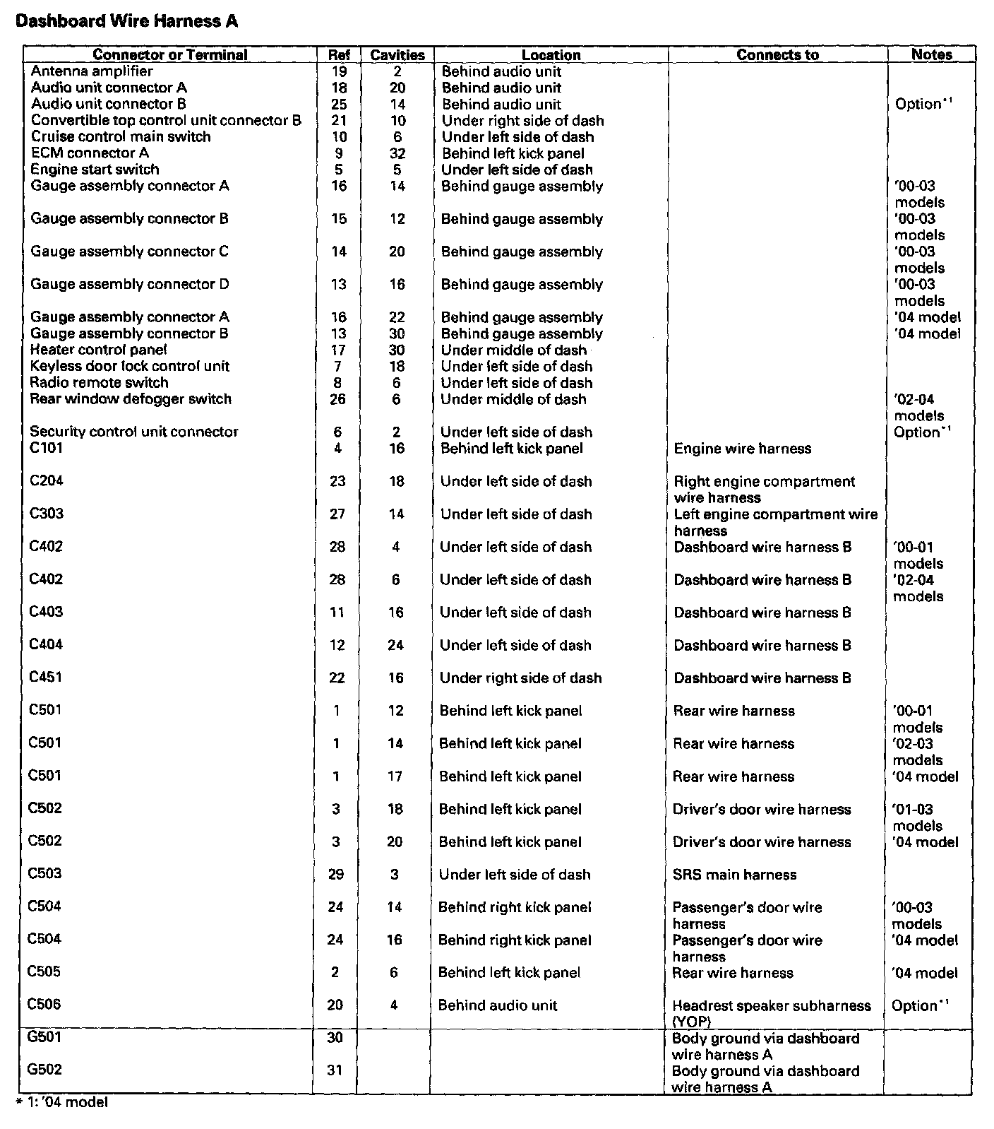 Dashboard Wire Harness A: