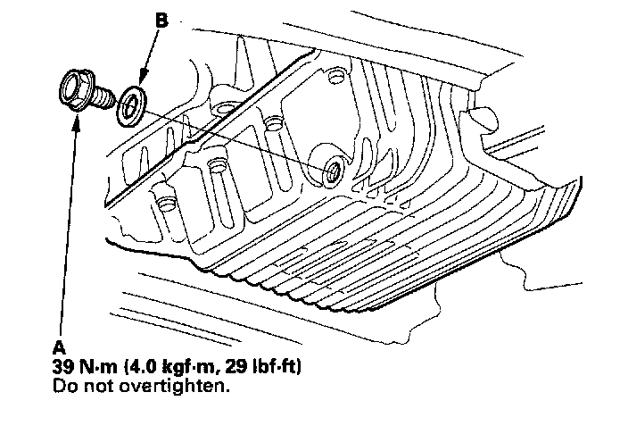 3. Reinstall the drain bolt with a new washer (B).