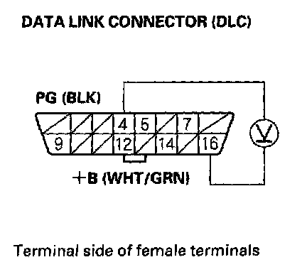 3. Measure voltage between DLC terminals No. 5 and No.16.