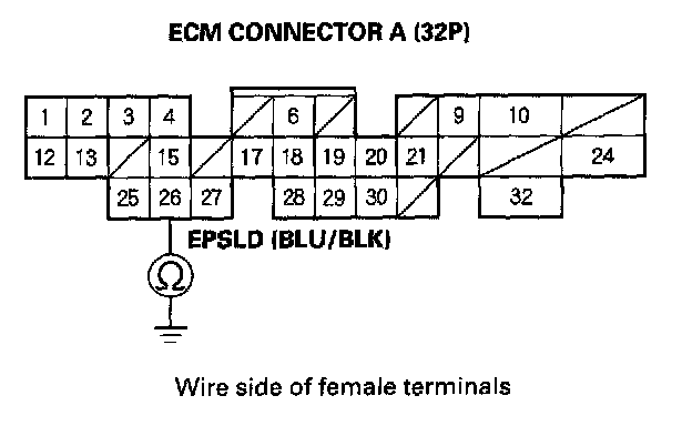 16. Check for continuity between body ground and ECM connector terminal A26.