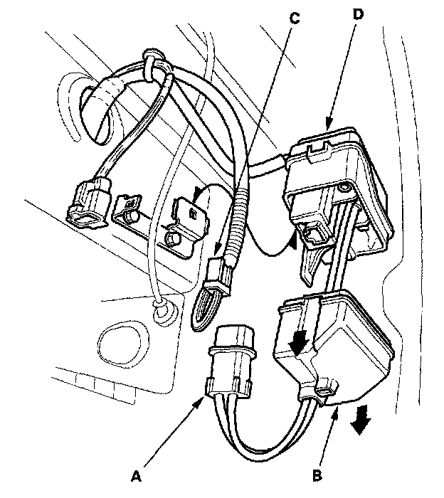 3. Remove the air pump electrical current sensor (D).