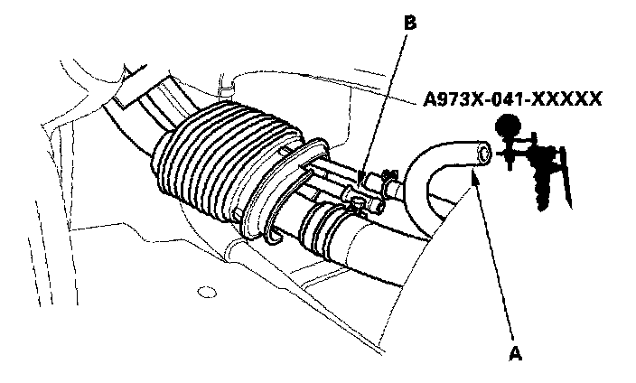4. Plug the fuel tank vapor recirculation pipe (B).