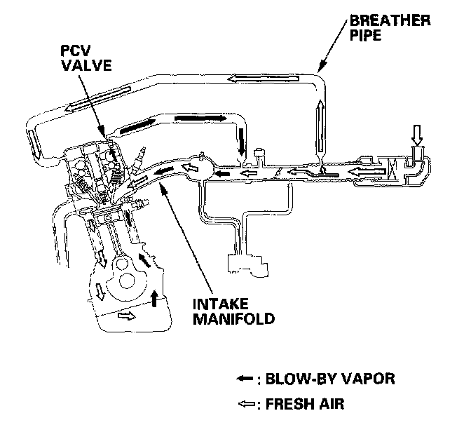 The PCV valve prevents blow-by gases from escaping into the atmosphere by venting them into the intake manifold.