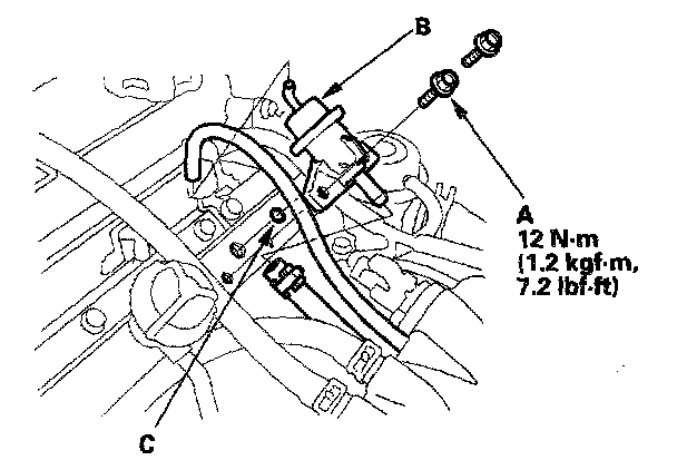 4. Apply clean engine oil to a new O-ring (C), and carefully install it into its proper position.